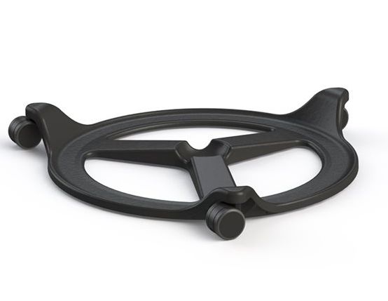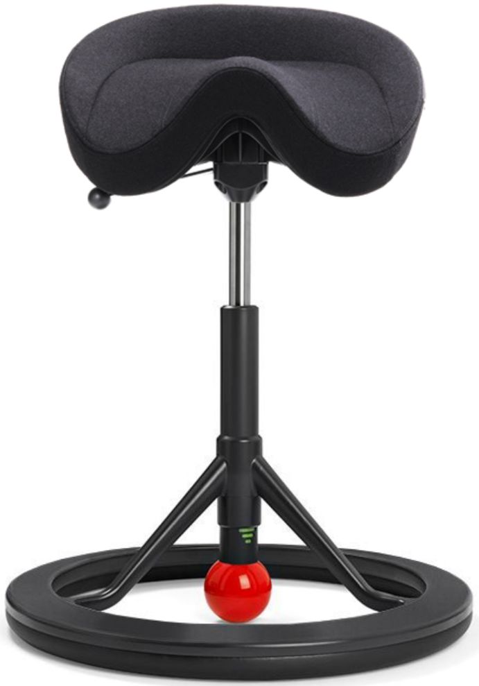 BackApp 2.0 aktiivituoli, istuin musta alcantra, harmaa runko, pallo punainen, saatavana pyöräalustalla.